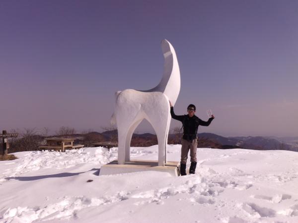 明神ガ岳分岐手前から雪が薄く積もっています。
