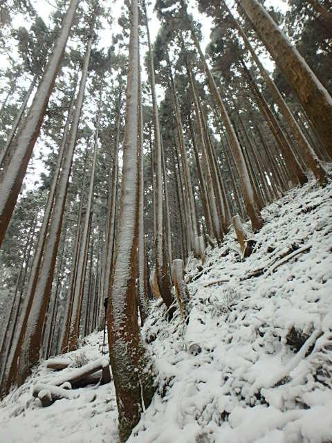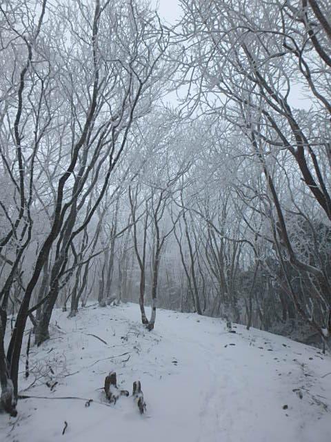 12月半ばにもかかわらず、寒波の直後ということもあり、頂上付近では積雪50㎝ほどで膝下まで埋まるくらいでした。