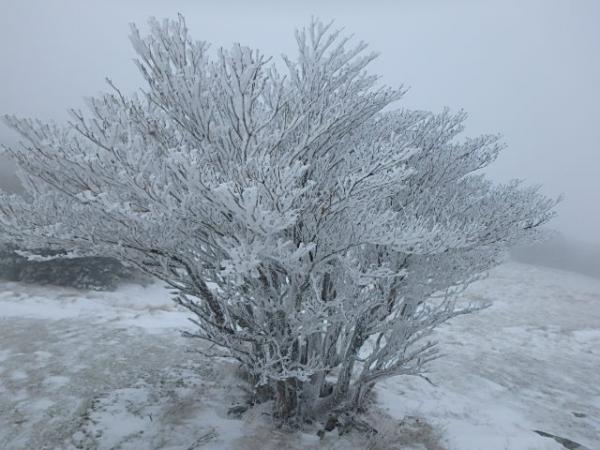 今回は曇り空で、霧氷が空に映えなかったので残念でした。