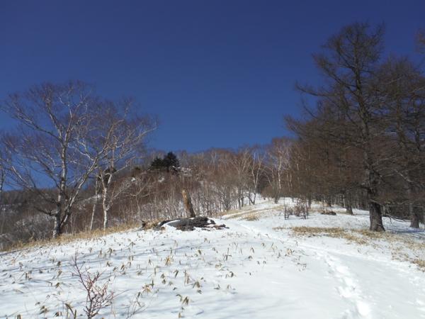 白樺金剛の先で落葉松の森を抜け広葉樹林となり男体山が横目に入ります。