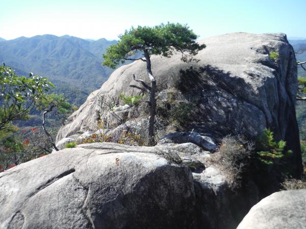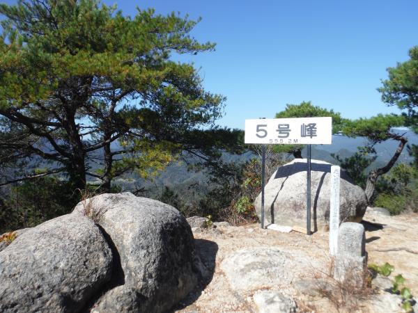 - 松ケ原登山口(50分)0号峰【八畳岩】(20分)2号峰(15分)4号峰(20分)6号峰(15分)8号峰(20分)東登山口