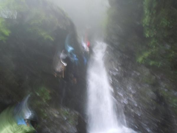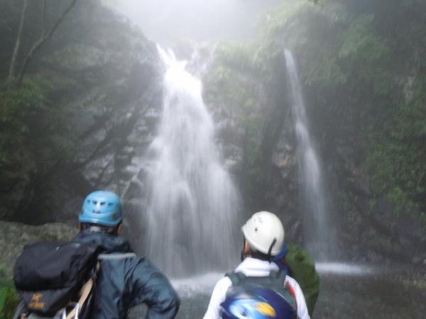 F4のセドの大滝は35mあり迫力満点でした。F4は大滝の左側の乾いた岩場を登っていくので岩登りも楽しめます。
