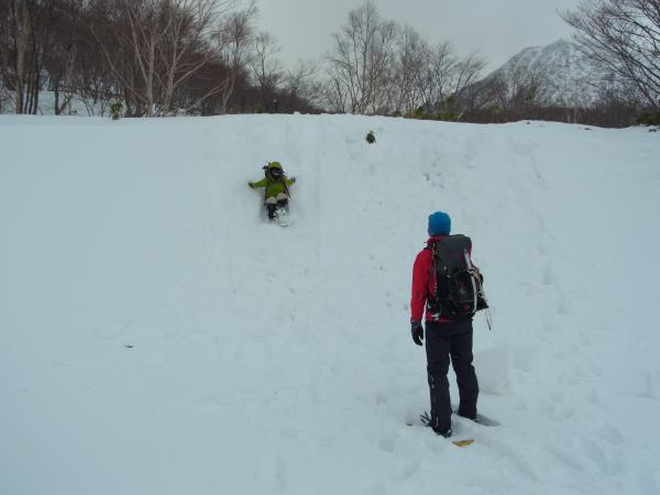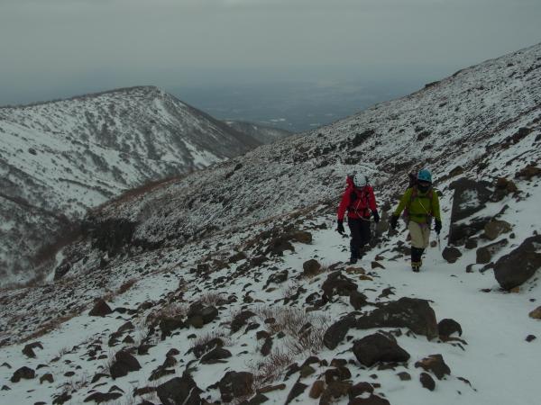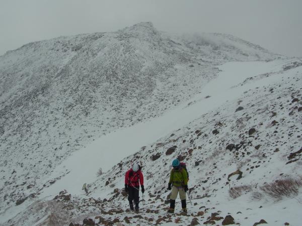 今回は雪山の練習ということもあり斜面でジグザグに歩いたり、吹き溜まりでラッセルしたりととても楽しい一日でした。那須岳は強風で有名な山なのでレイヤリングを考えたりアイゼン歩行のバランスを鍛えたりするには最適な山です。