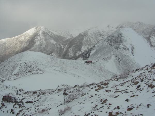 2015年の登り初めは那須岳に行って来ました。今年から雪山をやるという友人と一緒にピッケル、アイゼン、スノーシューと、完全な雪山スタイルでチャレンジ!!大丸温泉に着いた時は暖かく風も無かったのですが、頂上近くなると風が強まり雪まで降って来ました。風で体が振られる様になってきたのであっさり撤退。