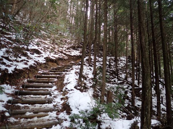 杉谷平野分岐を越えると関西のマッターホルンの名にふさわしい急坂が始まります。