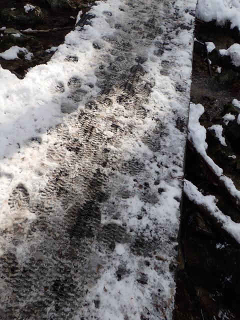 - たかすみ温泉はうっすらと雪が積もっており滑りやすくなっていました。