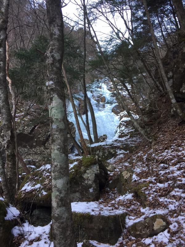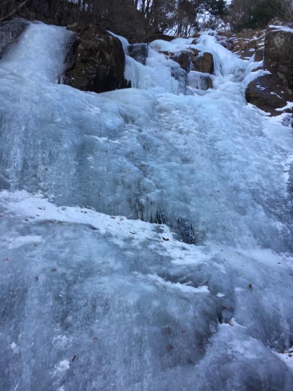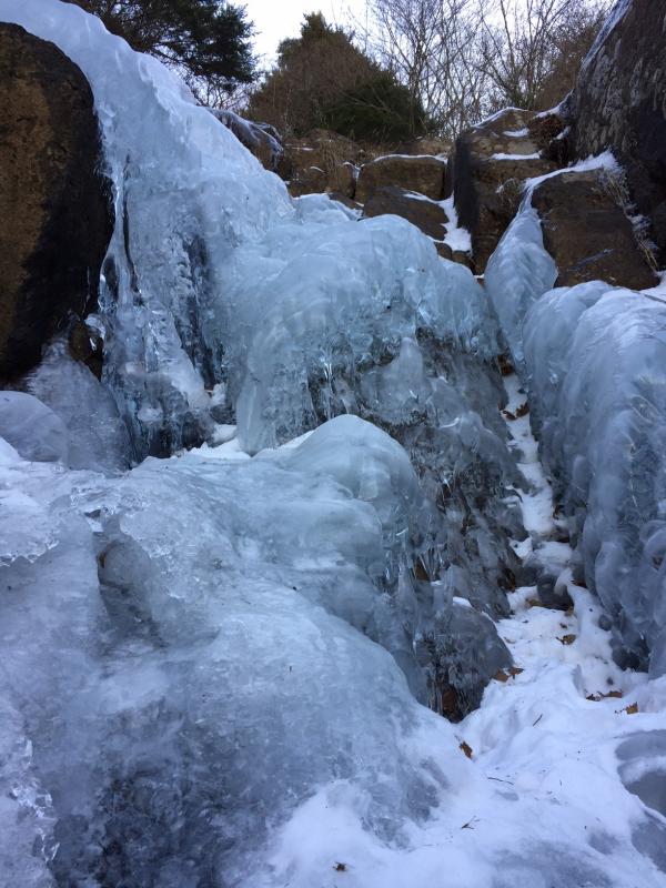 滝の中央付近に一部薄い氷があるので、注意が必要です。