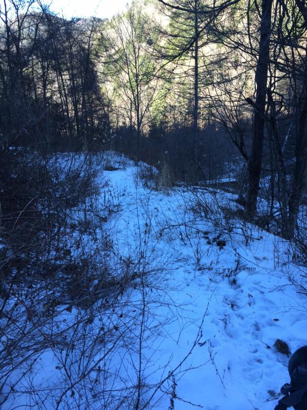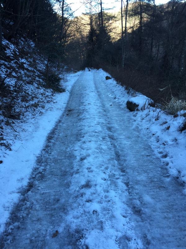 - 駐車場手前の林道に凍結箇所が有り、車の運転に注意。