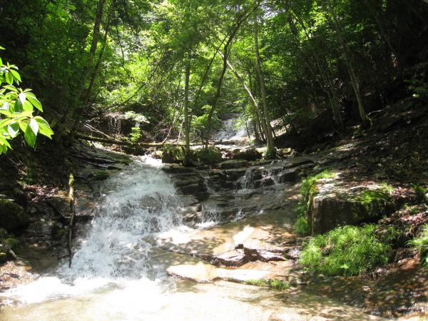 沢登り初級向けの沢で、ゆるやかな流れの中に、小規模ながら美しいナメが連続します。