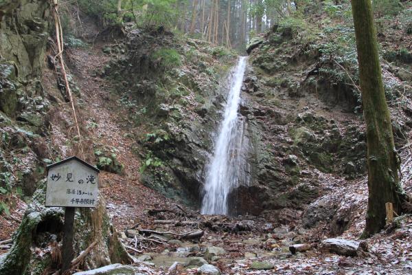 - 金剛登山口バス停→(10分)→妙見谷登山口→(40分)→妙見の滝→(120分)→