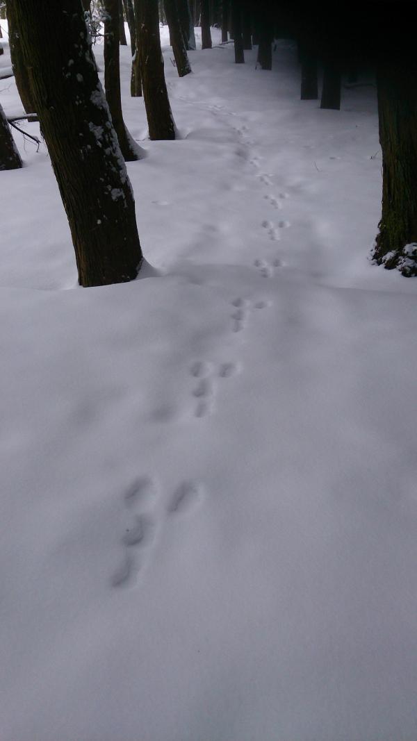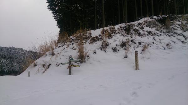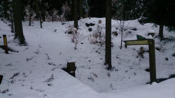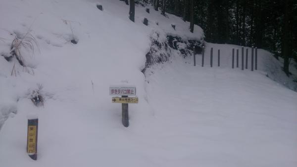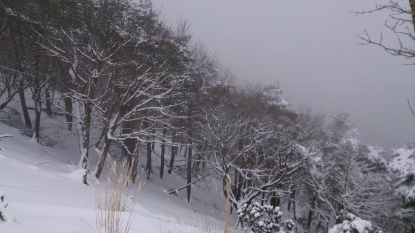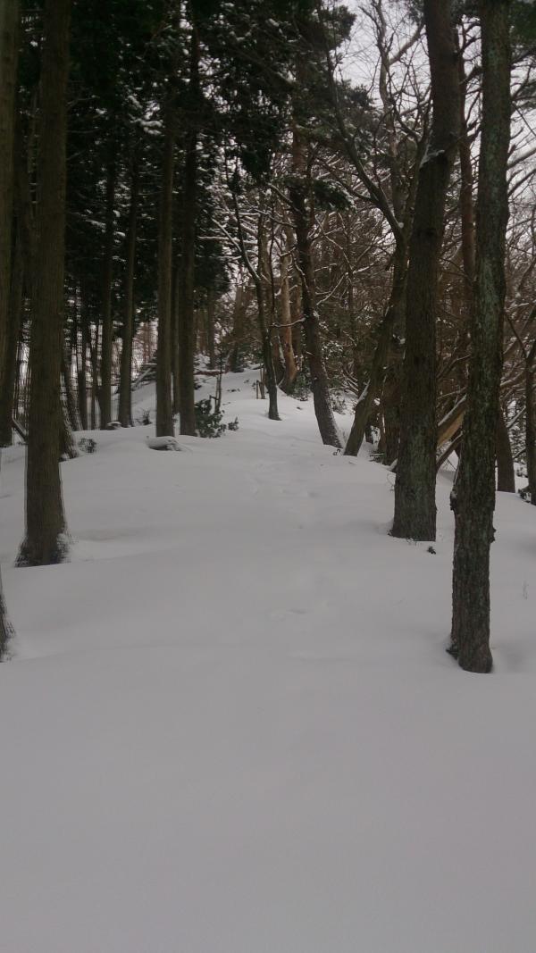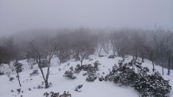 平日で降雪していたためか、登山者は自分だけでした。トレースは消えていましたが、踏んだ後のくぼみは残っていたので、地図とコンパスも併用し登っていきます。