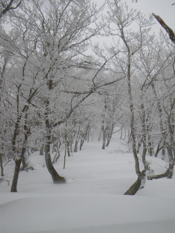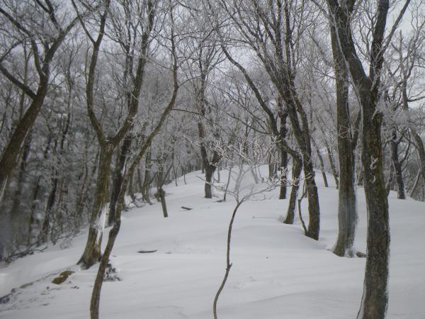 ⑥846mピーク手前の坂から雪が深くなり、846mピーク付近から霧氷の世界でさらに雪が深い