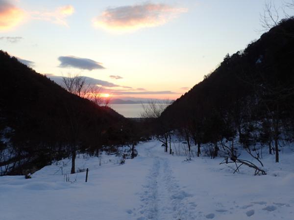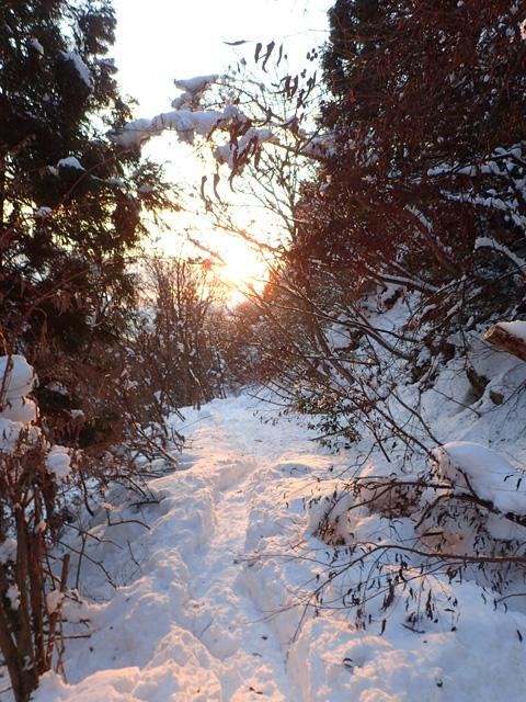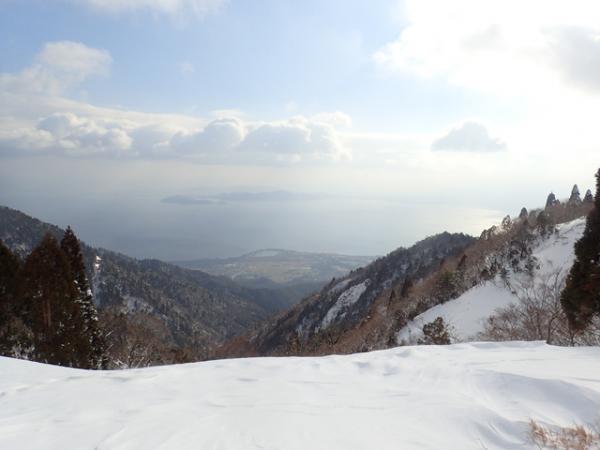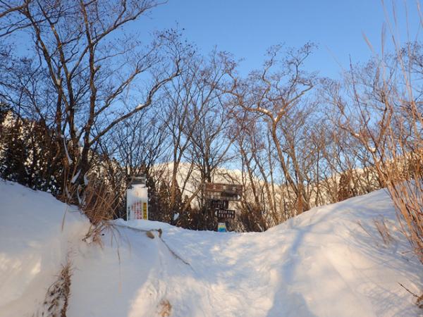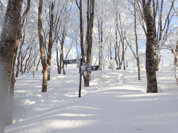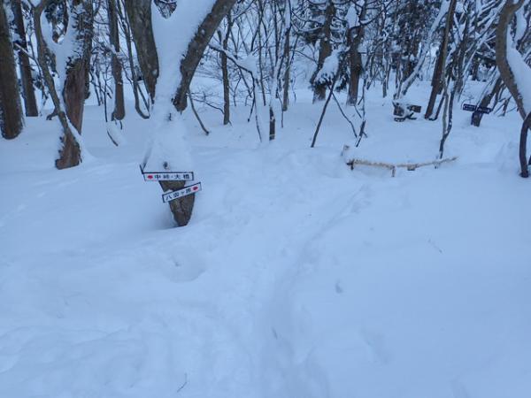 トレースはしっかりついていましたが、金糞峠手前50mくらいの所は昨日から降り積もった雪のせいか腰くらいまで雪が積もっており、ラッセルに苦労しました。