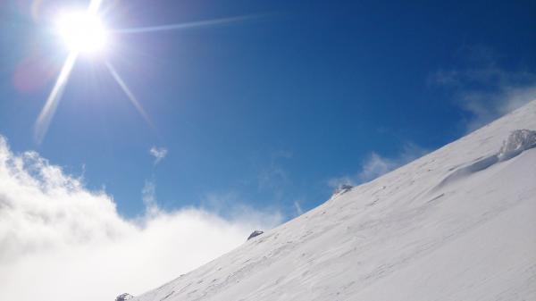 高度を上げていくと急に視界が開け、真っ青な空と羊蹄山のテッペンが。そして無風。