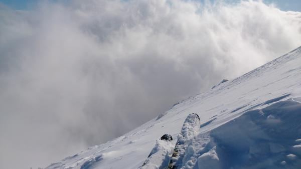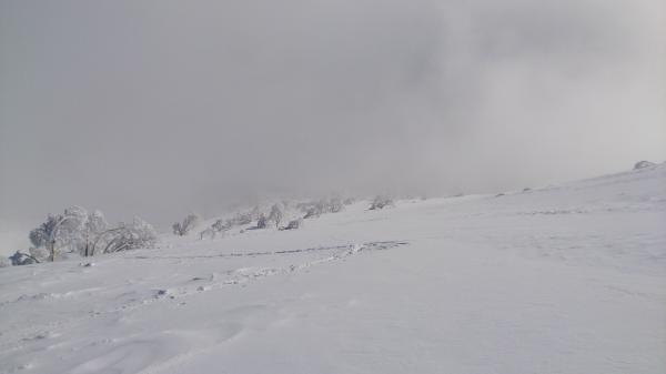 シール登高の限界1600m弱のところで泣く泣く登高終了。