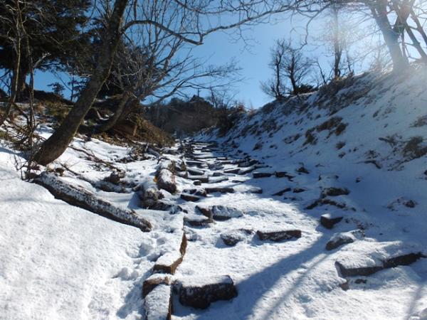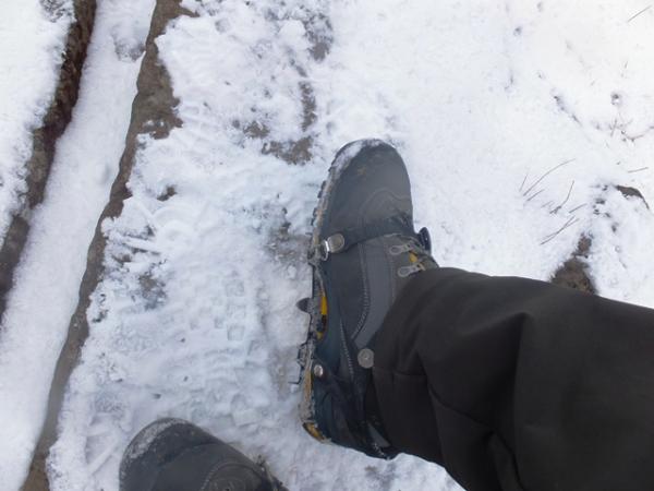 所々アイスバーンになっていますので、6本爪アイゼンがあれば安全に歩けます。