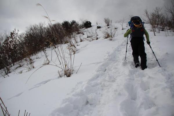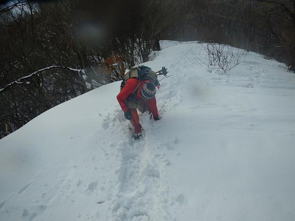が4合から積雪が、スノーシュー置いてきたことを後悔してしまいました。
