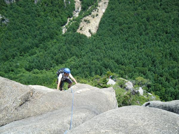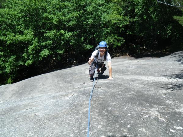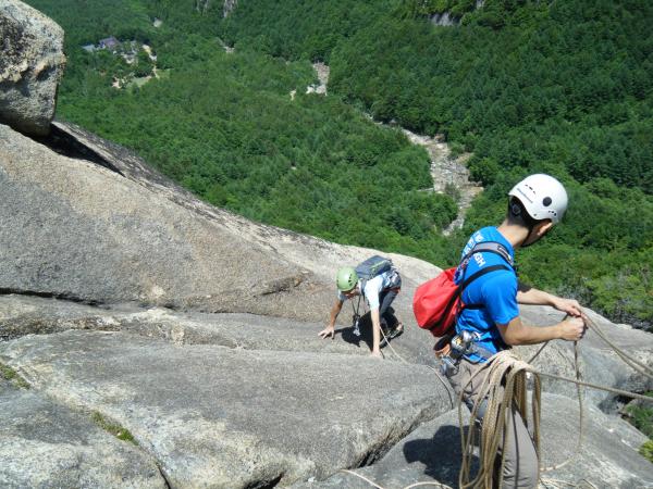 マルチピッチは初めての向山さん、早いです。難なく登ってきます。