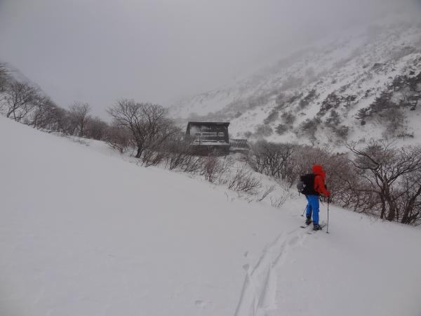 降雪のためくろがね小屋まではワカン・スノーシューがあると便利です。