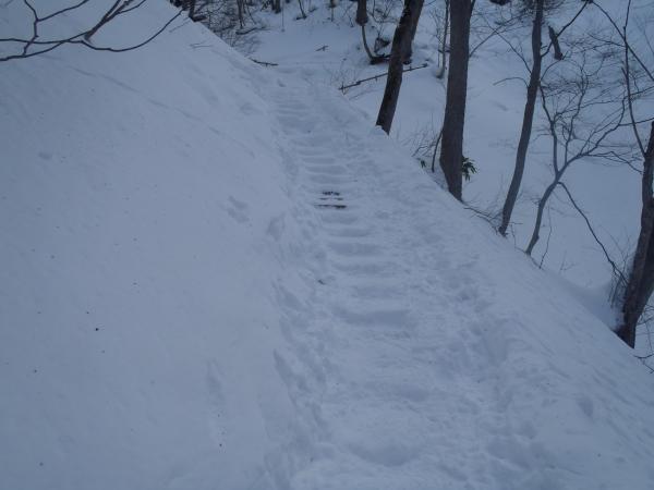 登山道は、しっかりと踏まれていて軽アイゼンがあると便利です。