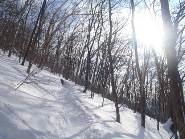 動物の足跡や野鳥を観察しながらのんびりと冬の藻岩山を堪能できました。