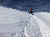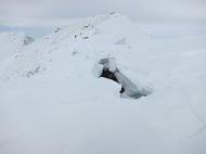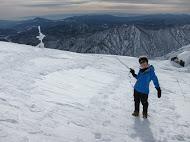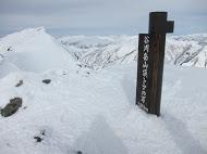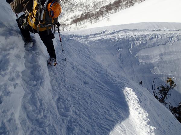 ・熊穴沢の避難小屋手前に切り立った鞍部あり、スノーボードが先行していてツルツル だったので、今回は アイゼンに履き替え通過しました。