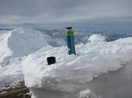 無事、両ピークに到着。オキの耳からはトマの耳をまいて所々笹の穴にはまりながら肩の小屋へ。温かい飲み物で一服。