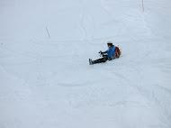 スキー場手前でお尻滑りを試みるも、雪が深く歩いたほうがよっぽど早い…。