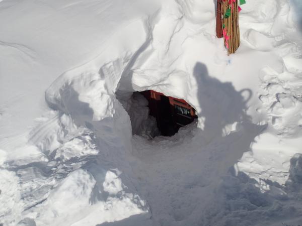 が、雪は深い…。昨年の同時期よりも避難小屋は深く深く埋まっていました。