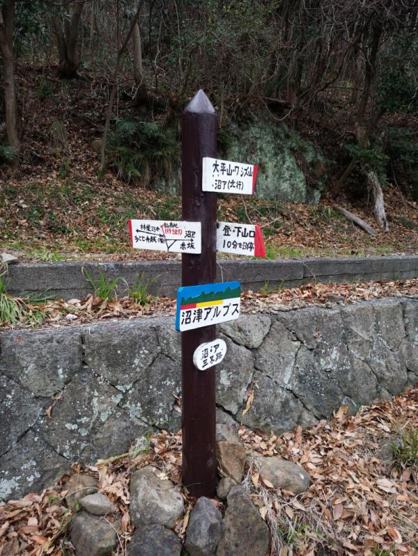 - 多比登山口-40-大平山分岐-10-大平山-60-鷲頭山-70-志下坂峠-20-徳倉山-20-道路(バス停までは+10)
