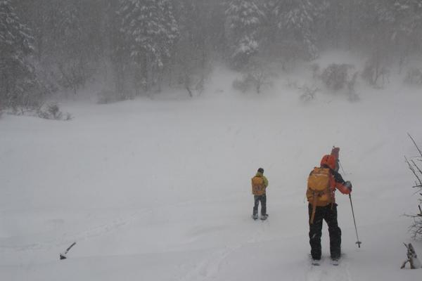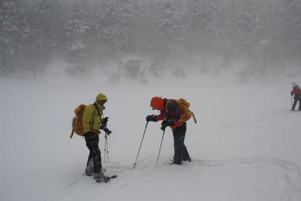 スノーシューのスノートレックに最適の山も猛吹雪は