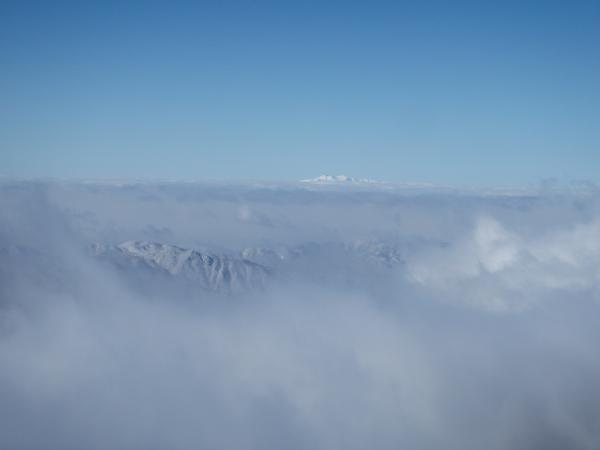 ちらっと見える前穂高や雄大な笠ヶ岳、夏に行った霞沢岳、遠くに見える白山・・