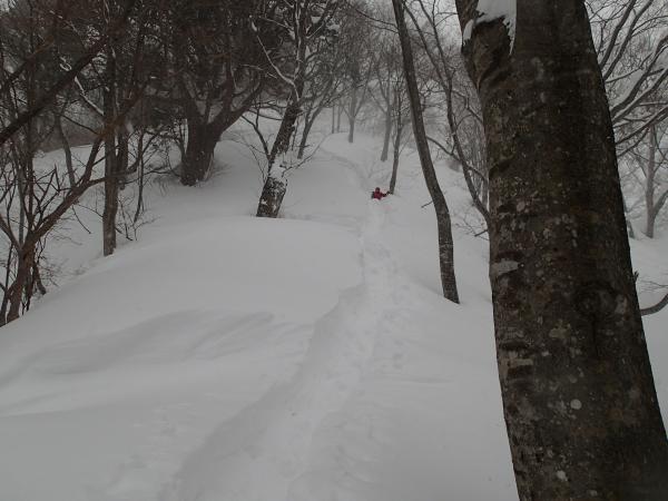 途中からはお尻そりでぐんぐん下ります。適度な傾斜の尾根で早い早い!