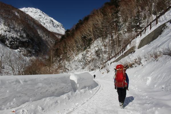 - 1/18 釜トンネル入口<70分>大正池<30分>田代池<100分>河童橋<10分>小梨平