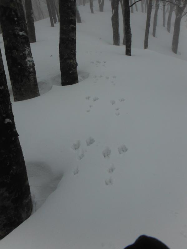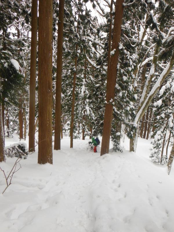 雪が多かったのですが、登り始めはトレースがあり、比較的楽に歩けました。トレースがなくなってからは、斜度もきつく、雪も深かったので、久しぶりに大汗をかきかき登りました。