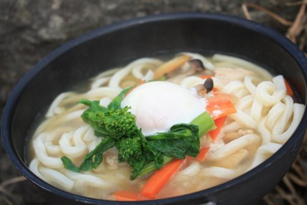 山頂では、やはり冷えるので、暖かい恰好をして、具だくさんのうどんで温まりました。