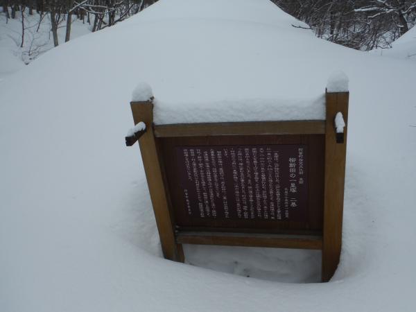 諏訪峠は阿賀野川沿いの旧会津街道にある峠で、幕末に吉田松陰が脱藩して東北へ向かう際に利用したルート上にあります。松陰が越えたのは何と真冬(!)で、現在のように整備されていない雪深い道を、寒さに耐えながら、雪に阻まれながら、やっとの思いで乗り越えたそうです。峠には困難の跡が刻まれた石碑が残っていますが、この日は雪に完全に埋もれていました。