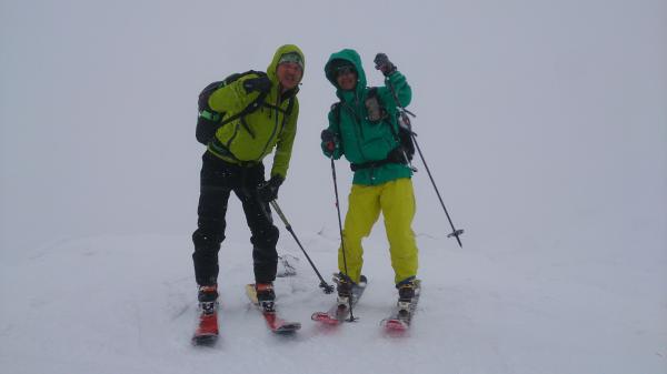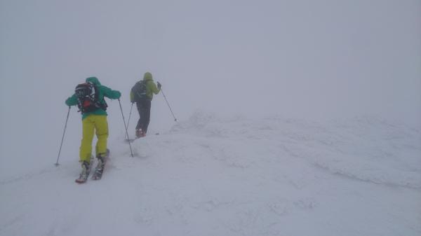 頂上直下100mは風の影響によりクラストと吹き溜まりが交互に続き、登りも下りも神経を使いました。