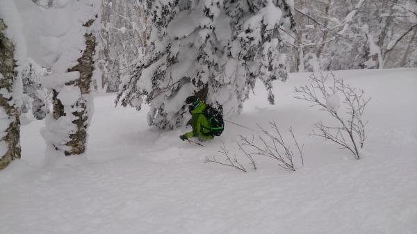 ジグを切らないと登れないくらいの斜面じゃないとパウダー期は辛いです。