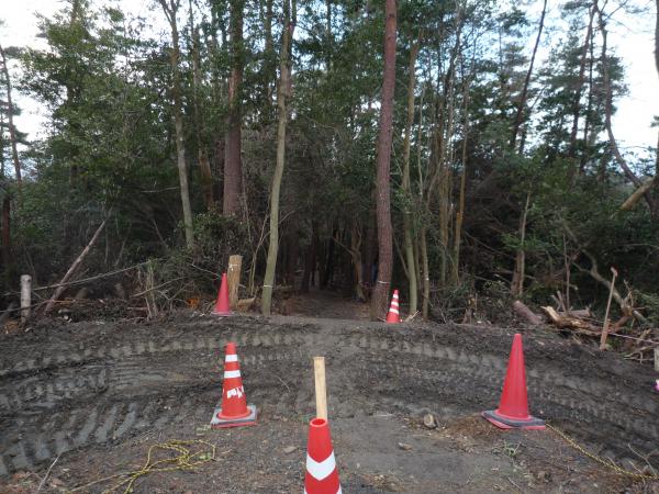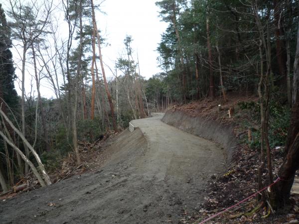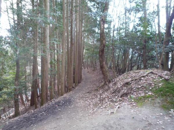 - 森林管理ゲートから登山道に入るまでは林道20分ほど林道を歩きます。登山道に入ってから5分ほどで京都トレイルコースと合流します。とても歩きやすく、人もよく歩いておられます。