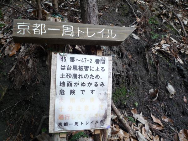 - 山科駅~毘沙門堂跡~森林管理ゲート(25分)⇒京都トレイル41と合流(25分)⇒大文字山四つ辻(30分)⇒大文字山山頂(5分)⇒五山送り火大文字(15分)⇒鹿ケ谷コースへ「楼門の滝」(30分)⇒蹴上駅(40分)