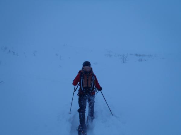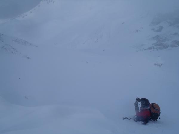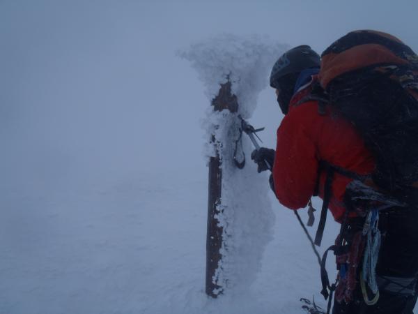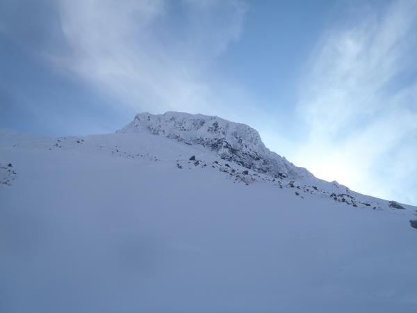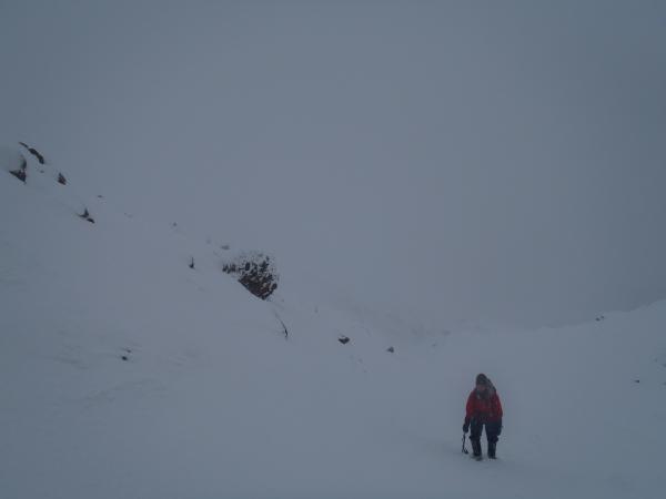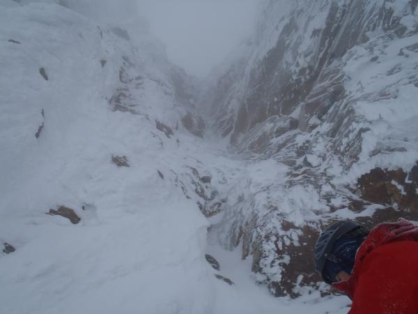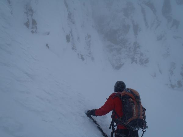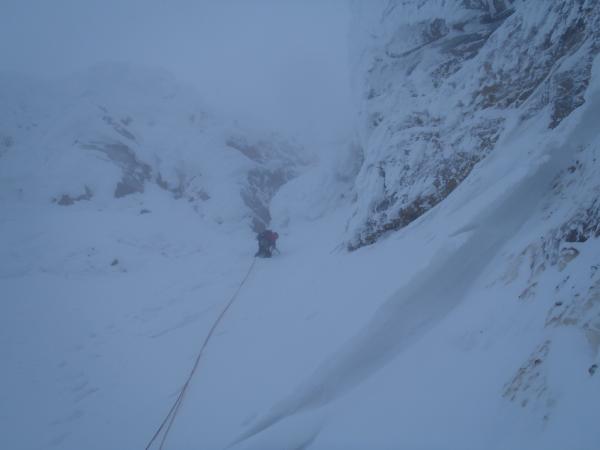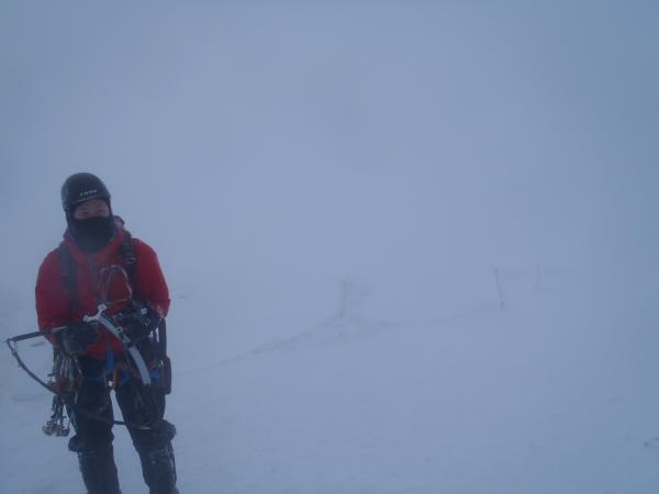 今回は正面壁の右or左クーロアールを予定していましたが視界が悪く気がついたところ北西稜に取り付いていたので、
