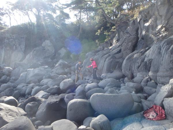 いくつか乾いている岩場があったのでまったりゆる~くクライミング♪