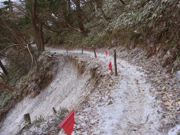 昨日から気温が下がってきたので、上の方は道が氷初めていますので、注意してください。