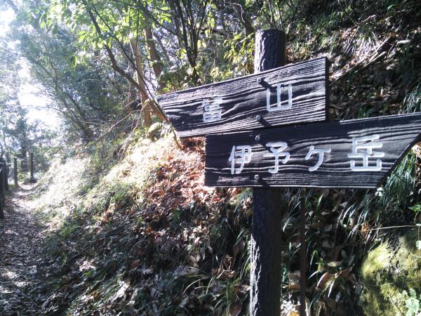 - 国保病院バス停→(10分)→平群天神社→(50分)→伊予ヶ岳南峰→(10分)→伊予ヶ岳北峰→(10分)→南峰→(15分)→富山分岐→(30分)→車道→(40分)→富山登山口→(30分)→富山北峰→(40分)→伏姫ノ籠窟