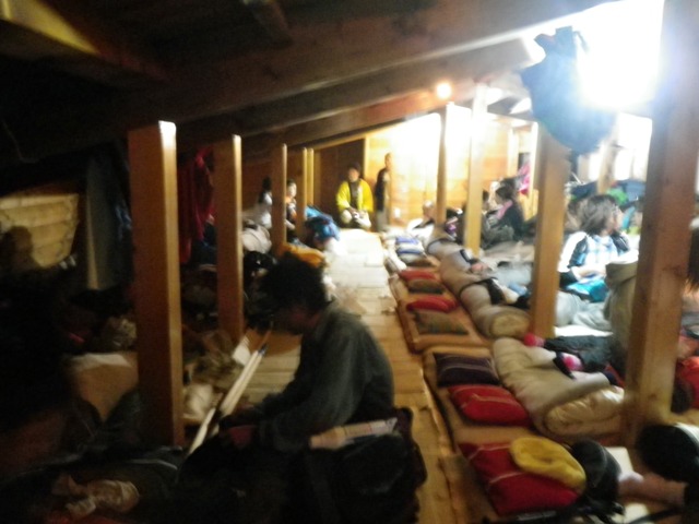 - 五合目(15:30) - 七合目・花小屋(17:30) - 八合目・白雲荘(20:45) - 再出発(1:30) -