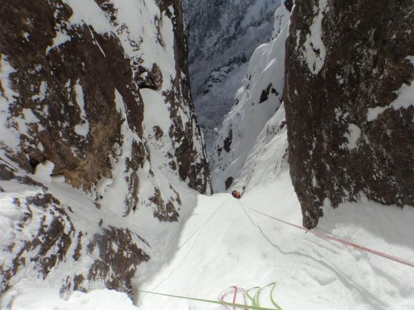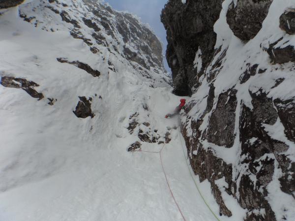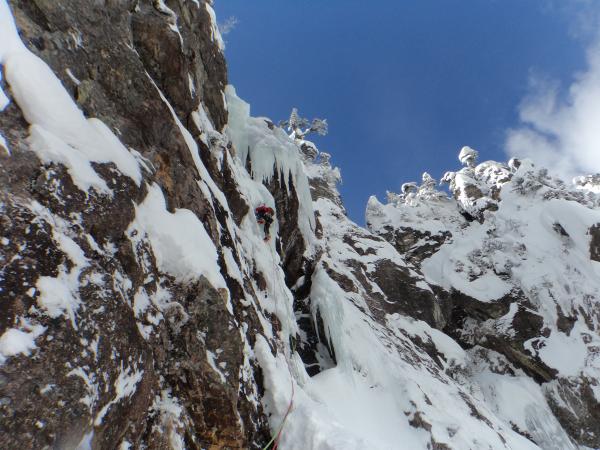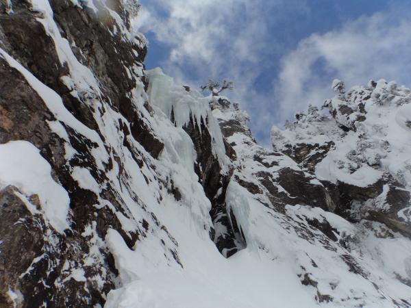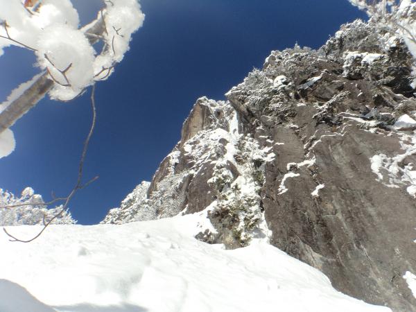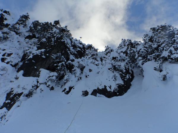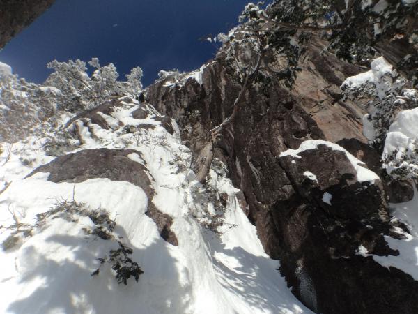 3ルンゼは例年より雪の付き方が悪く、その時々でルートの難易度は変化する。グラスホッパーは氷が脆くとても悪かった。