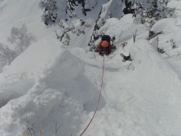 3日目は1ルンゼに行く予定であったが、降雪のため中止。ルンゼは雪が降るとすぐに雪崩が起こり、1ルンゼは特に規模の大きいものが発生するようです。