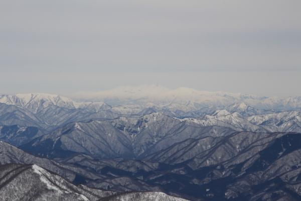 山頂からは北アルプス 南アルプス 白山 雪化粧の山系の絶景は