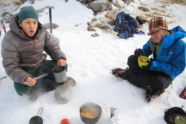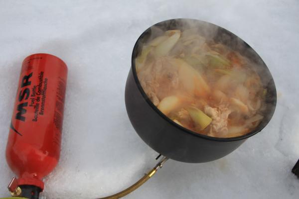 山頂はさすがにひえます。暖かな鍋、うどん ほんとうに暖まりました!